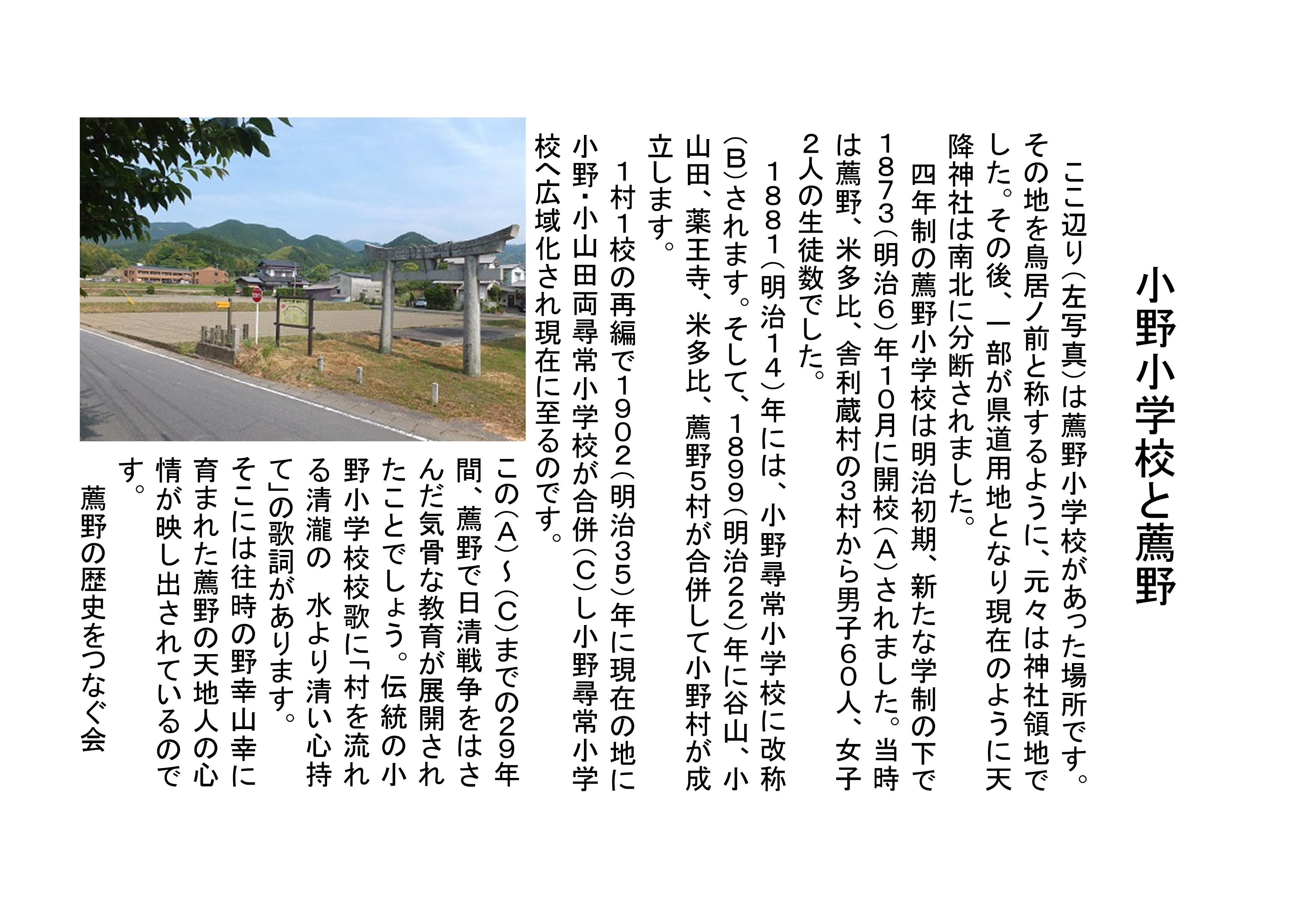 薦野の歴史話 第41話 【小野小学校と薦野】